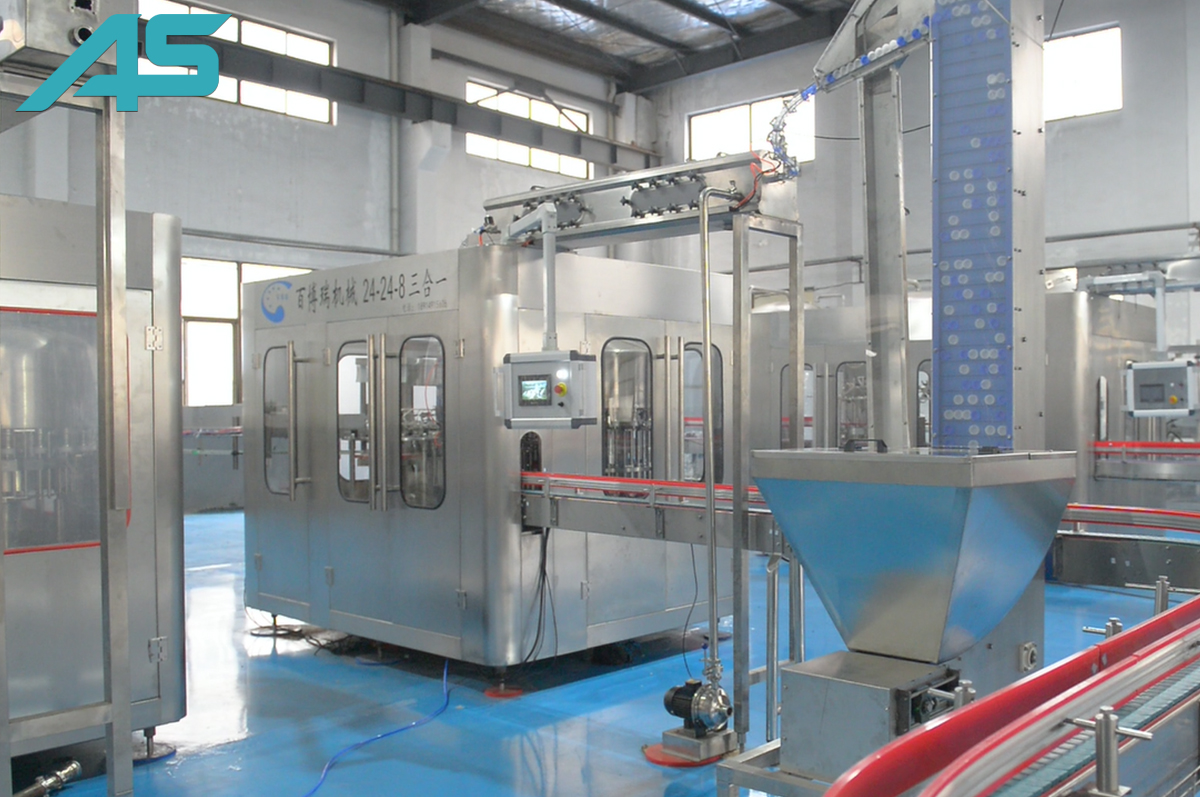 山泉水灌裝線由自動消毒水沖瓶機, 純凈水沖瓶機、灌裝機、旋蓋機(四合一設(shè)備),套標機縮標機、激光打碼機, 熱收縮膜包機,裝箱機等系列產(chǎn)品組成。具有工藝先進、系統(tǒng)完善、性能可靠、使用方便等特點。