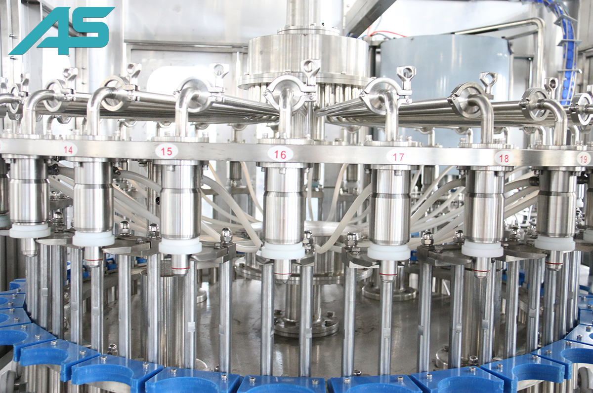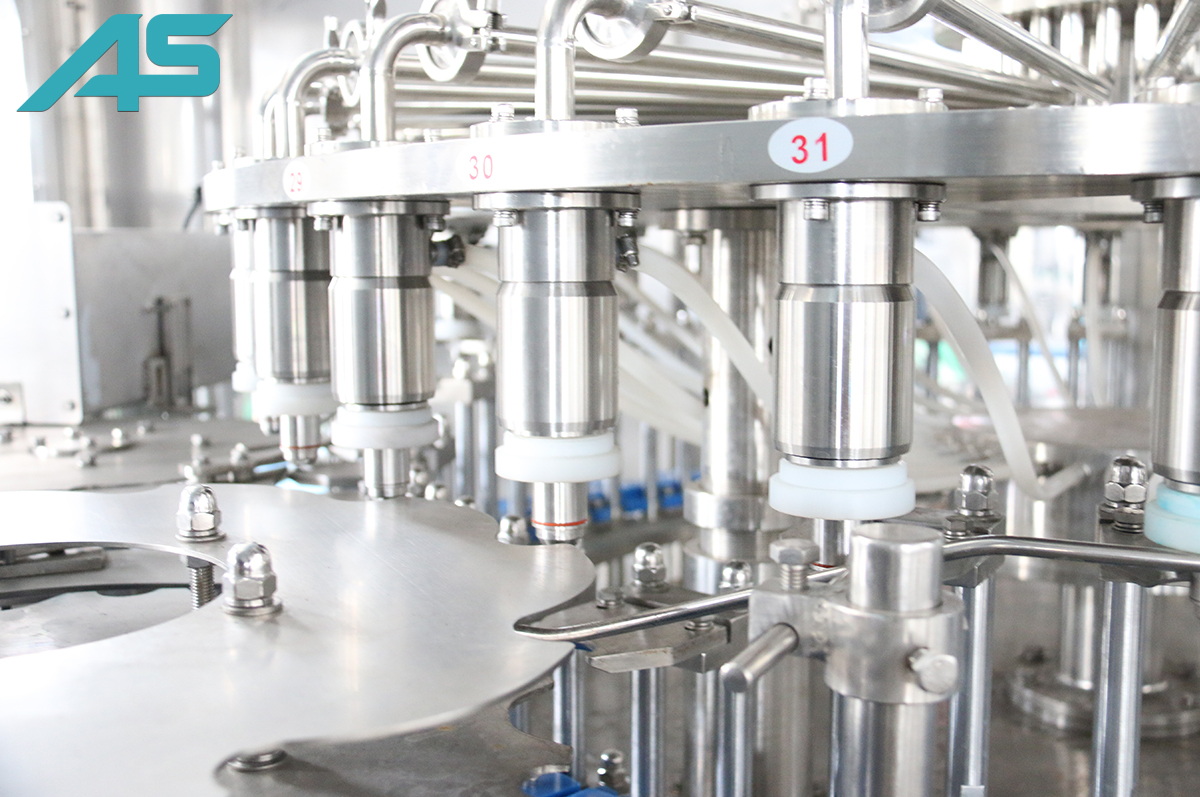 本設(shè)備是集沖瓶、灌裝、封口于一體,全自動(dòng)系統(tǒng)由PLC可編程控制系統(tǒng)控制,觸摸屏操作,高速運(yùn)轉(zhuǎn),其中臺(tái)面采用的是雙層臺(tái)面,臺(tái)面上的機(jī)器連接結(jié)構(gòu)降低重心,旋蓋頭的間距減低,同時(shí)在里面增加磁鐵數(shù),扭力均勻且可調(diào)節(jié)。另外旋蓋部分做成一體式,更加結(jié)實(shí)耐用。